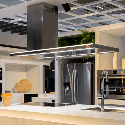 - Design Único: As coifas suspensas "Falmec" combinam um design inigualável com materiais de alta qualidade, proporcionando uma atmosfera especial na cozinha.