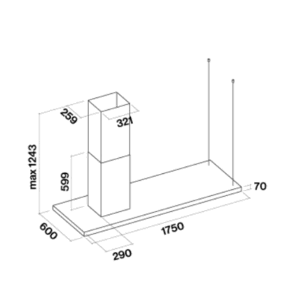 Coifa de Ilha Falmec Elle 175cm 220V Preto Fosco - Sucção e Iluminação com Filtro Carbon.Zeo, Design Suspenso e LED Dimerizável