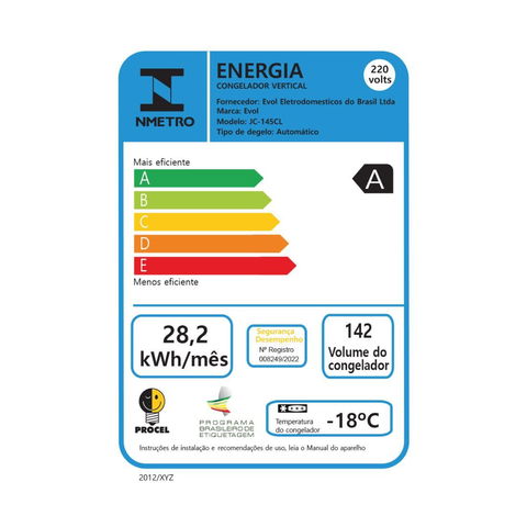 O Freezer de Embutir Evol Inverter Smart JC-145CL combina performance e design sofisticado para sua área gourmet. Com 142 litros de capacidade líquida e compressor Inverter, garante conservação rápida e estável. Sua faixa de temperatura varia entre -18 °C a 0 °C, proporcionando baixo ruído e eficiência.