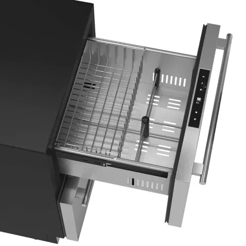 A Gaveta Freezer da linha undercounter Elettromec é a solução perfeita para você que precisa de um espaço adequado para congelar seus alimentos e bebidas. Com um design sofisticado em aço inox, ela se harmoniza perfeitamente com outros produtos Elettromec, como a Adega de 45 garrafas, a Beer Center e o Frigobar de 135 litros. 🥂🍻