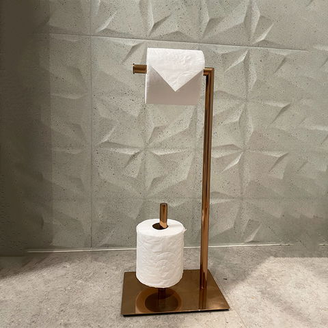 Papeleira Inox de Piso Rose Gold - Design Contemporâneo de Alto Padrão, Revestimento PVD, Inox 304, Anticorrosão, Garantia de 10 Anos