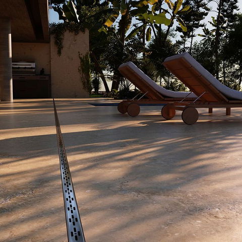 Ralo Linear para Varanda e Espaços Gourmet Elleve Infinity Slim 120cm - Tampa Inox Vazada, Perfil PVC Ajustável, Ideal para Espaços Reduzidos