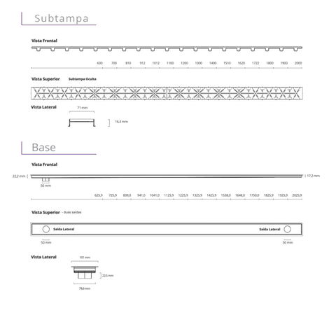 | Subtampas Oculatas | 02 Subtampas ocultas em Aço Inox 304 (onde o próprio revestimento/piso é fixado sobre a tampa) |