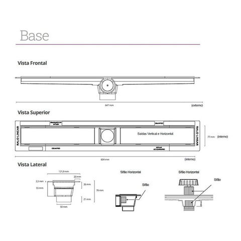 | Base (altura) | Reduzida (permite a instalação no contrapiso) |