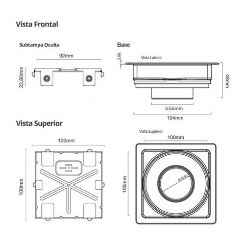 | Tamanho | 10cmX10cm acoplável a caixa sifonada de 10cm e tubulação de 50cm |